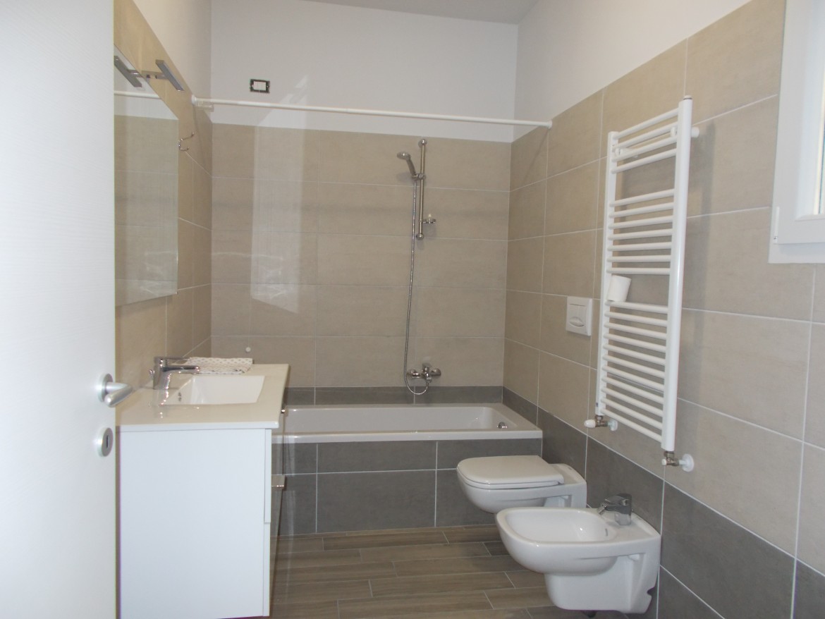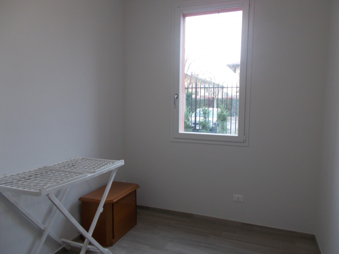 Pavimentazione in gres effetto legno, infissi in alluminio con doppi vetri, videocitofono.