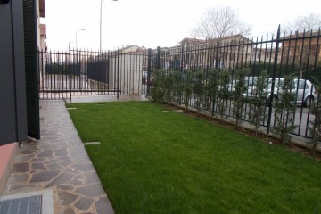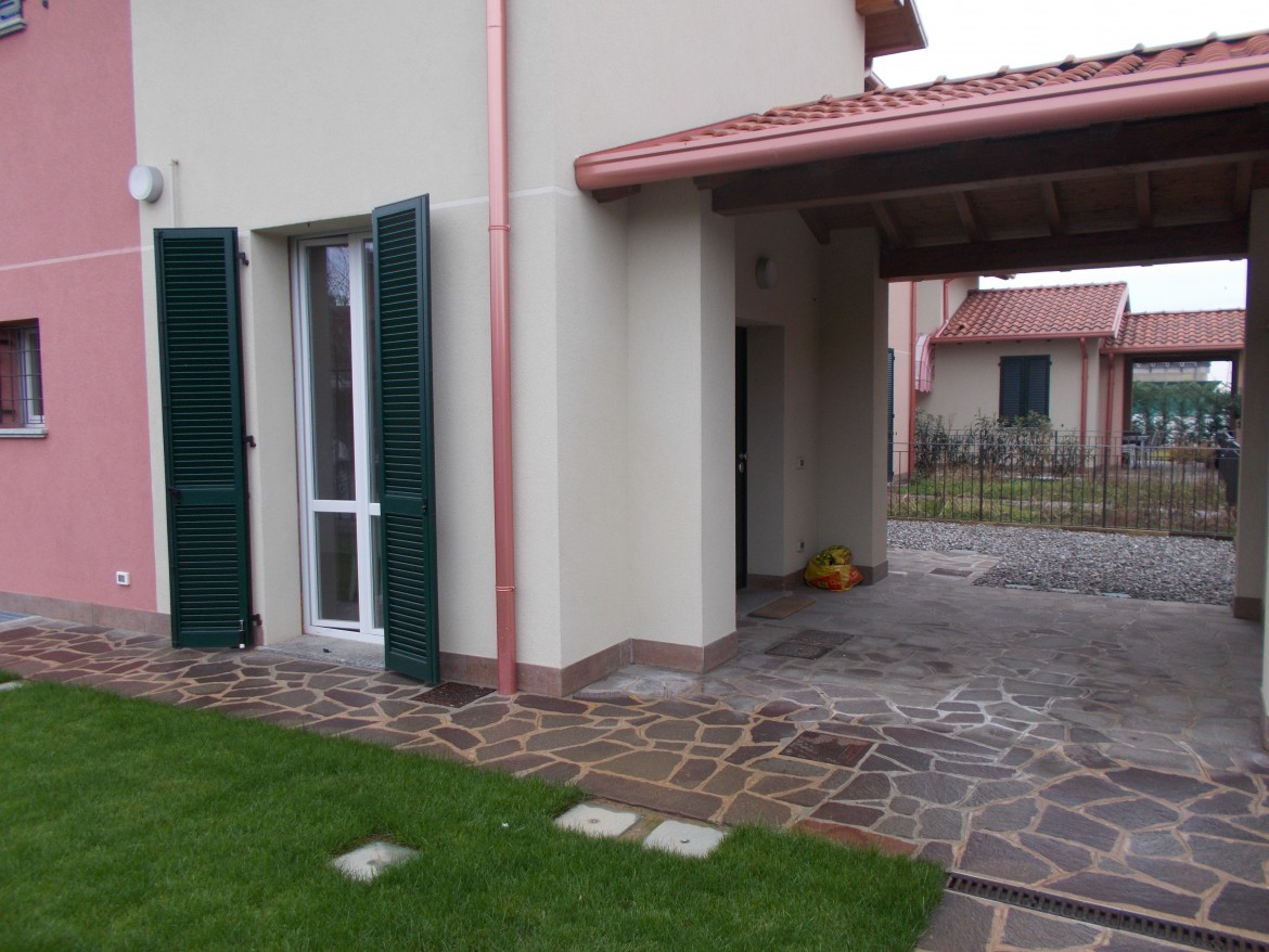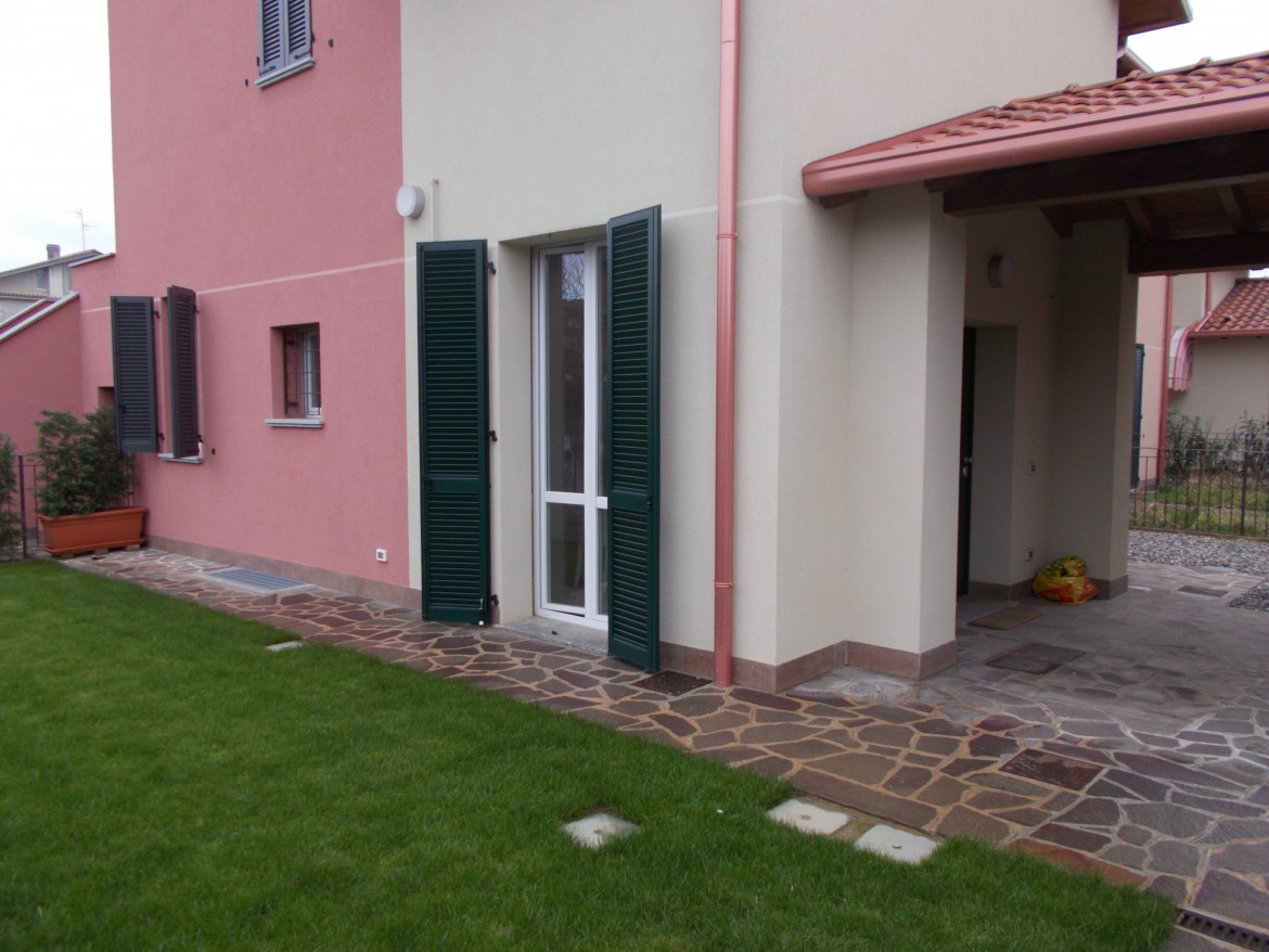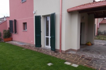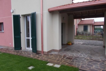 Il giardino ad uso esclusivo, di generosa metratura, si estende principalmente sul lato cucina, diventa un porticato in direzione dell' ingresso per proseguire con un pezzetto a ghiaia.