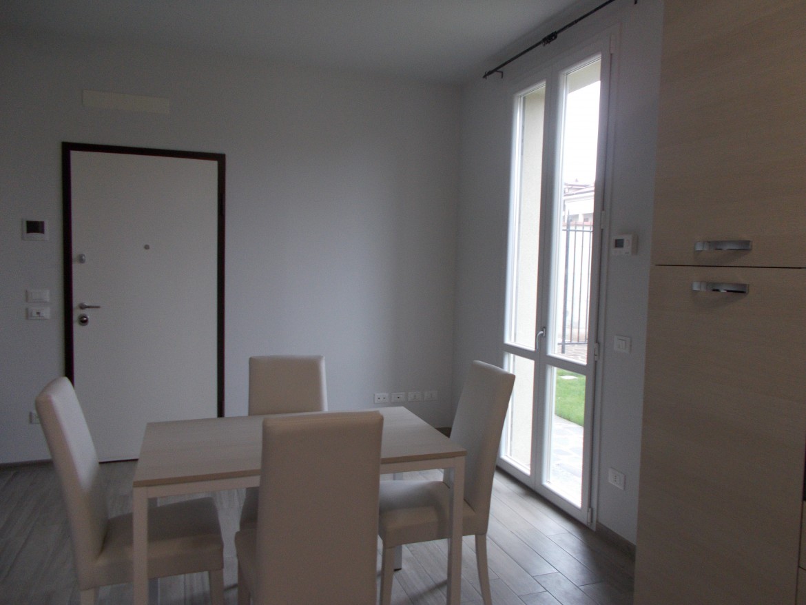 A Vaprio d' Adda, in zona tranquilla vicino al centro del paese, all' interno di un contesto residenziale del 2015, proponiamo ampio bilocale, posto al piano terra, servito da ingresso privato, composto da soggiorno con cucina a vista con accesso diretto al giardino privato, disimpegno, camera matrimoniale che si affaccia su un ulteriore pezzetto di giardino, studiolo e servizio.